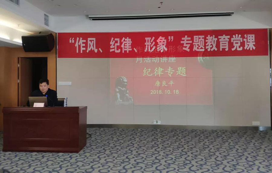 10月18日上午,根據(jù)“三會一課”制度和臨桂新區(qū)工委關(guān)于落實(shí)黨風(fēng)廉政建設(shè)和反腐敗工作的具體要求,促進(jìn)領(lǐng)導(dǎo)干部廉潔從業(yè),新城投資集團(tuán)黨支部邀請市紀(jì)委派駐臨桂新區(qū)紀(jì)檢組副組長唐良平同志為新城投資集團(tuán)全體黨員干部職工上了一堂主題為《作風(fēng)、紀(jì)律、形象》的專題教育黨課。