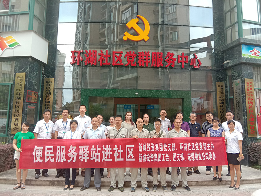 2018年6月29日上午,新城投資集團(tuán)黨支部聯(lián)合環(huán)湖社區(qū)黨支部在環(huán)湖社區(qū)舉行了“便民服務(wù)驛站”揭牌活動(dòng)和啟動(dòng)儀式。