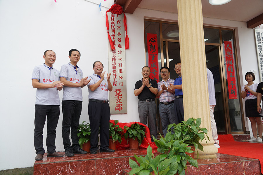 為了進一步發(fā)揮基層黨組織戰(zhàn)斗堡壘作用,加快推進項目建設(shè),6月26日下午,在西城大道南延長線項目現(xiàn)場,舉行了“廣西富林景觀建設(shè)有限公司臨桂新區(qū)西城大道南延長線道路提升工程黨支部”揭牌活動。