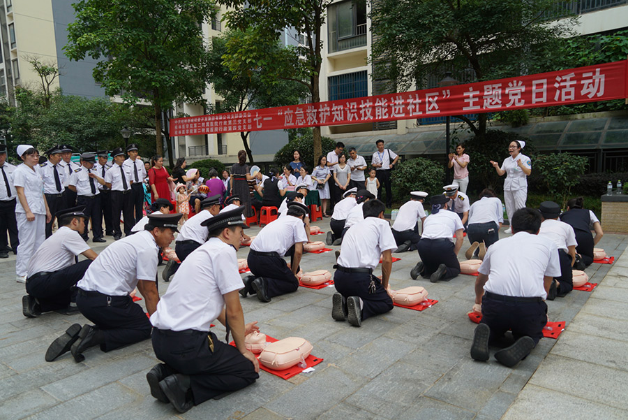 為充分發(fā)揮黨員志愿者的先鋒模范帶頭作用,增強(qiáng)轄區(qū)居民對(duì)健康的關(guān)注,加強(qiáng)對(duì)夏季防病的健康意識(shí),6月29日(周六)上午,新城投資集團(tuán)黨支部和桂林醫(yī)學(xué)院第二附屬醫(yī)院行政第三、第四黨支部在桂林市臨桂區(qū)新城國(guó)奧小區(qū)舉行“應(yīng)急救護(hù)及健康知識(shí)進(jìn)社區(qū)”主題黨日活動(dòng)。
