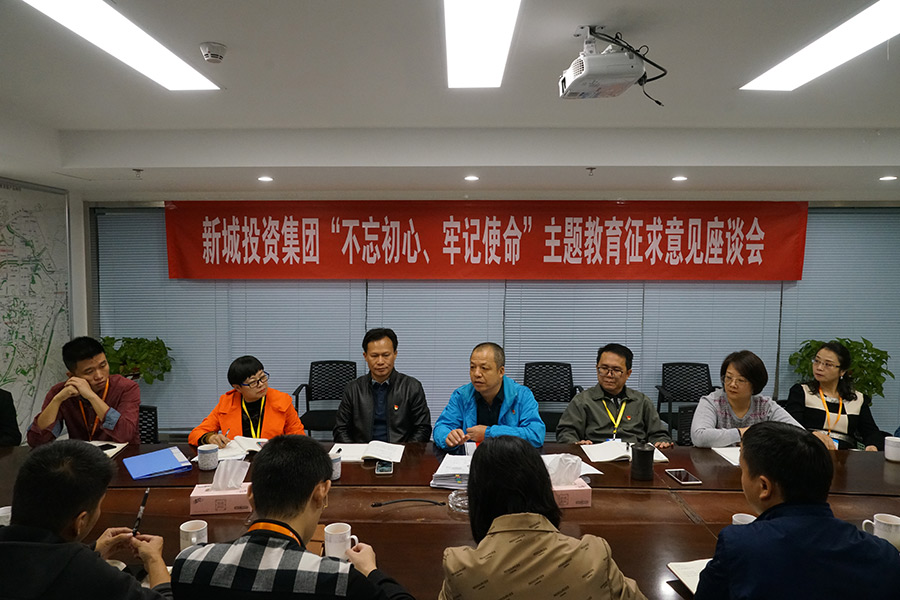10月25日,根據(jù)開展“不忘初心、牢記使命”主題教育工作部署,新城投資集團召開了征求意見座談會,聽取與會人員對班子成員存在突出問題的反映,以及對改進工作作風(fēng)、改進工作的意見建議。會議由主題教育領(lǐng)導(dǎo)小組組長、董事長周道林主持,班子成員及各部室、子公司負責(zé)人參加座談會。