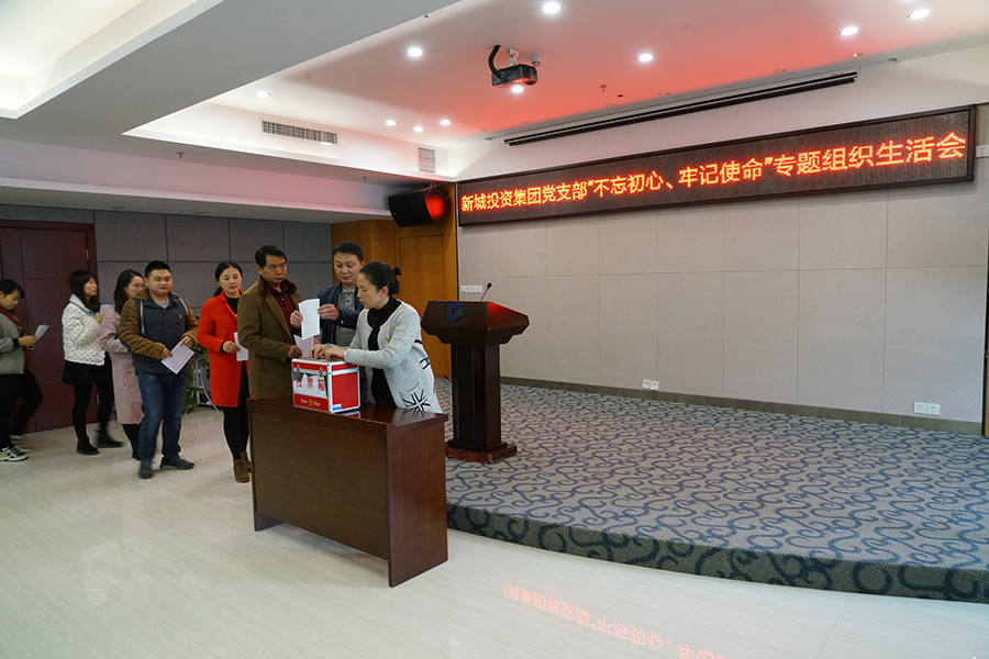 12月10日,新城投資集團黨支部召開“不忘初心、牢記使命”專題組織生活會和民主評議黨員。集團公司黨支部書記、董事長周道林主持會議,集團公司全體黨員參加會議。