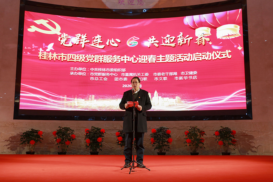 為豐富和活躍全市人民精神文化生活,營造歡樂、祥和、文明、健康的節(jié)日氛圍,桂林市四級黨群服務中心“黨群連心 共迎新春”主題活動于1月15日在市黨群服務中心舉行隆重的啟動儀式。新城投資集團黨支部書記、董事長周道林應邀參加迎新活動。