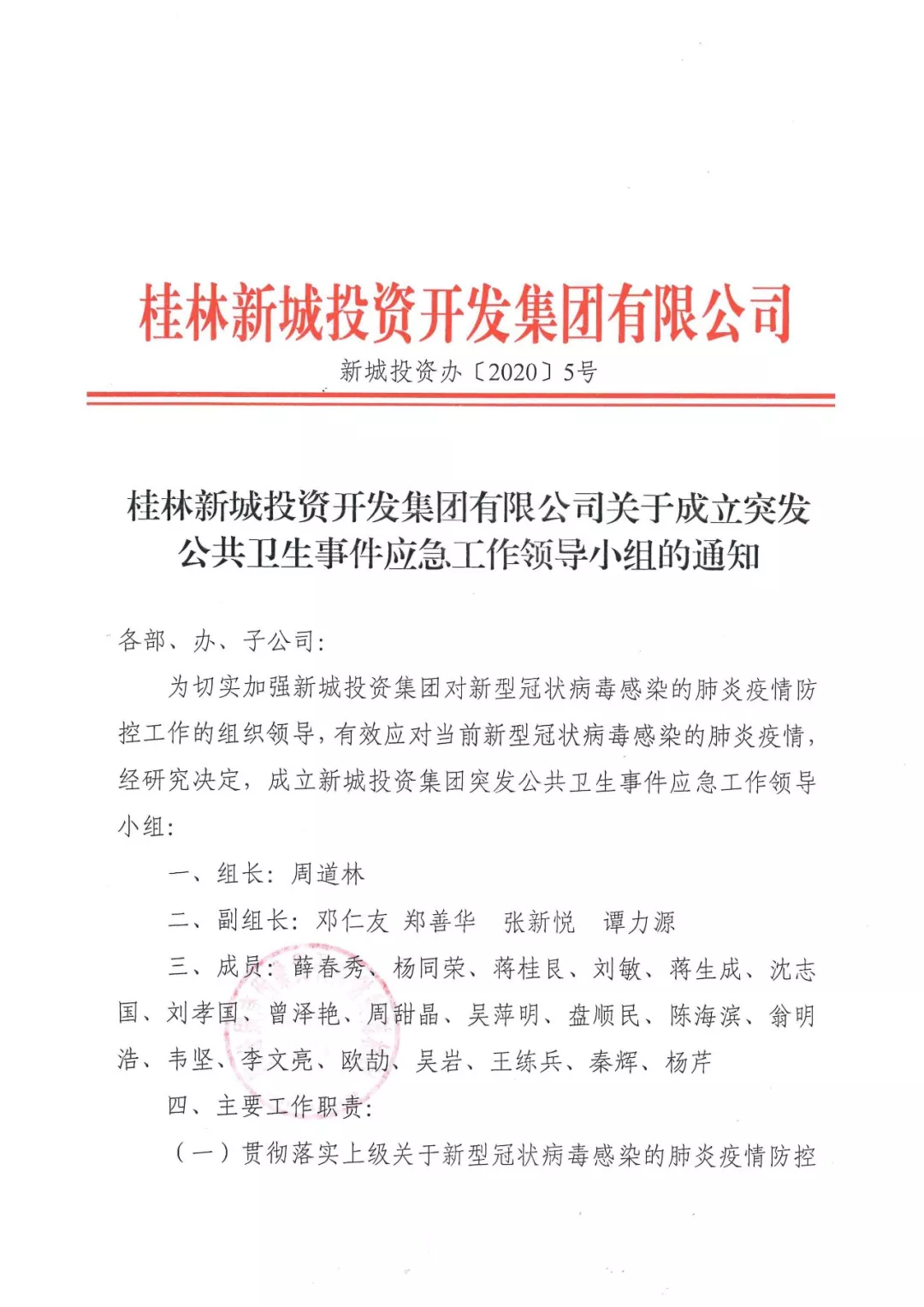 在新春佳節(jié)、闔家團(tuán)聚之際,新型冠狀病毒感染肺炎疫情防控形勢(shì)十分嚴(yán)峻。黨中央對(duì)疫情防控工作高度重視,習(xí)近平總書記作出重要指示。自治區(qū)黨委、政府和市委、市政府正在密集部署疫情防控工作,為響應(yīng)切實(shí)打贏疫情防控狙擊戰(zhàn)的戰(zhàn)斗號(hào)召,新城投資集團(tuán)黨支部書記、董事長(zhǎng)、總經(jīng)理周道林要求集團(tuán)公司迅速進(jìn)入“戰(zhàn)時(shí)狀態(tài)”,堅(jiān)決貫徹落實(shí)習(xí)近平總書記重要指示和講話精神,把抗擊疫情作為檢驗(yàn)“不忘初心、牢記使命”主題教育成效的又一“試金石”,切實(shí)履行主體責(zé)任和工作職責(zé),及時(shí)掌握疫情,及時(shí)采取行動(dòng),做到守土有責(zé)、守土盡責(zé),堅(jiān)決遏制疫情蔓延勢(shì)頭。