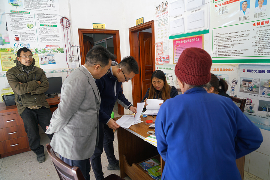 最后,譚力源同志參與了駐村隊員劉哲成為村民辦理醫(yī)?;顒?,詳細了解了隊員們?nèi)粘9ぷ骱蜕钋闆r,對他們無私奉獻、舍小家為大家精神及取得的成效表示高度贊許,希望駐村隊員繼續(xù)努力,克服困難,堅決打贏脫貧攻堅戰(zhàn)。