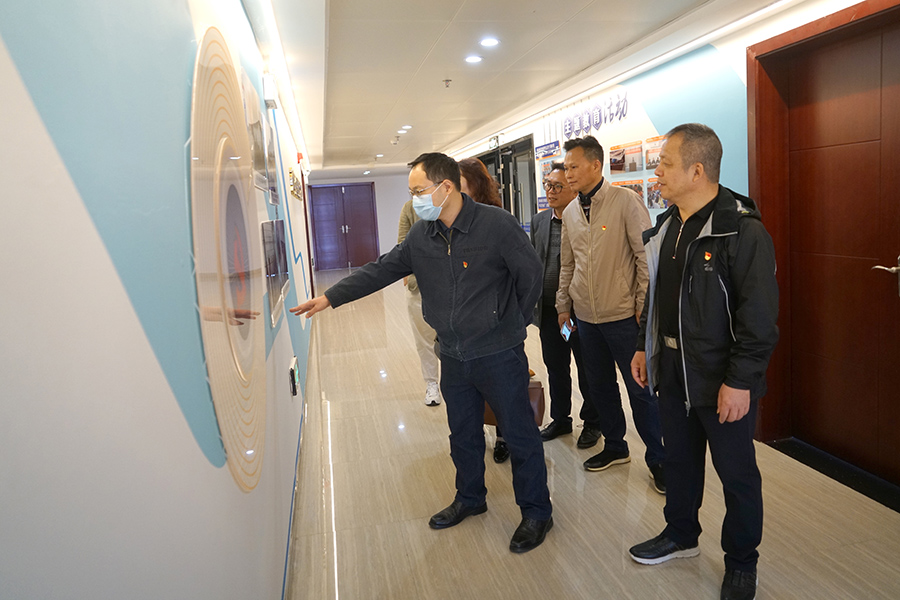 蔣玖明一行觀看集團(tuán)公司黨建宣傳展示,認(rèn)為集團(tuán)公司國企黨建品牌創(chuàng)建工作載體豐富,內(nèi)容扎實,為臨桂新區(qū)黨建品牌創(chuàng)建工作打下良好的基礎(chǔ)。