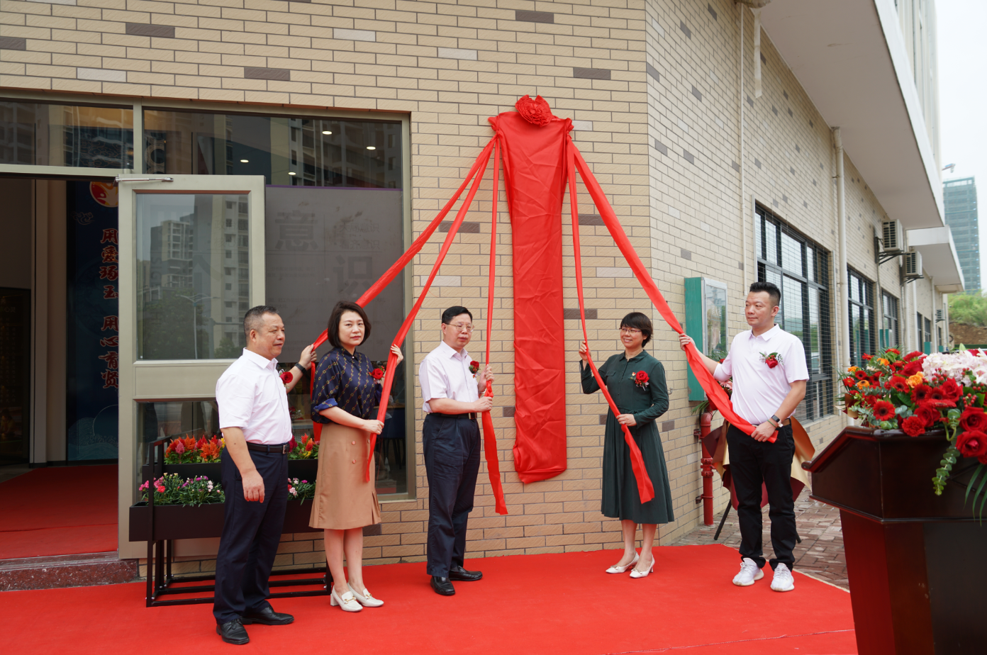 揭牌儀式上,周道林首先對新城寶賢小學(xué)黨支部的成立表示熱烈祝賀,對各級組織部門及教育工委的關(guān)心指導(dǎo)表示感謝。他表示,新城寶賢小學(xué)作為桂林新城投資開發(fā)集團(tuán)有限公司和桂林寶湖教育集團(tuán)聯(lián)合投資建設(shè)的一所現(xiàn)代化全日制小學(xué),學(xué)校黨支部積極打造“黨旗領(lǐng)航,用愛育賢”黨建品牌,把黨建工作融入學(xué)校教育教學(xué)全過程、各方面,努力打造具有現(xiàn)代教育理念、教藝精湛、師德高尚、一專多能的教師隊伍,為學(xué)校可持續(xù)發(fā)展提供堅強的思想、政治和組織保障。隨后,劉水玉一行共同為新城寶賢小學(xué)黨支部揭牌。