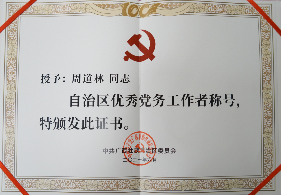 桂林新城投資集團黨總支書記周道林榮獲“廣西壯族自治區(qū)優(yōu)秀黨務工作者”稱號,并參加在桂林市會議中心小禮堂召開的廣西壯族自治區(qū)“兩優(yōu)一先”表彰大會桂林分會場電視電話會議。