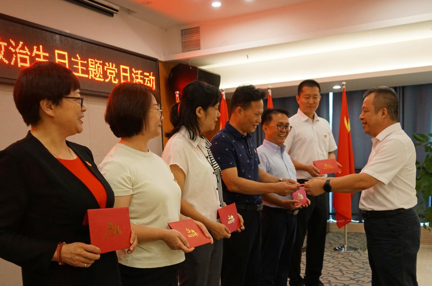 大會(huì)直播結(jié)束后,集團(tuán)黨總支開展“獻(xiàn)禮建黨百年 政治生日憶初心”主題黨日活動(dòng),為所有的黨員慶祝政治生日。自治區(qū)優(yōu)秀黨務(wù)工作者、黨總支書記、董事長、總經(jīng)理周道林向黨總支委員和支部委員贈(zèng)送政治生日卡,第一支部、第二支部書記向其他黨員贈(zèng)送政治生日卡?!斑@是一份沉甸甸的政治生日禮物,是初心,更是責(zé)任”“我會(huì)時(shí)刻牢記共產(chǎn)黨員這一特殊身份”。黨員們?cè)谑盏秸紊湛〞r(shí),更多的感受到的是黨員的身份、黨員的榮譽(yù)、黨員的宗旨。