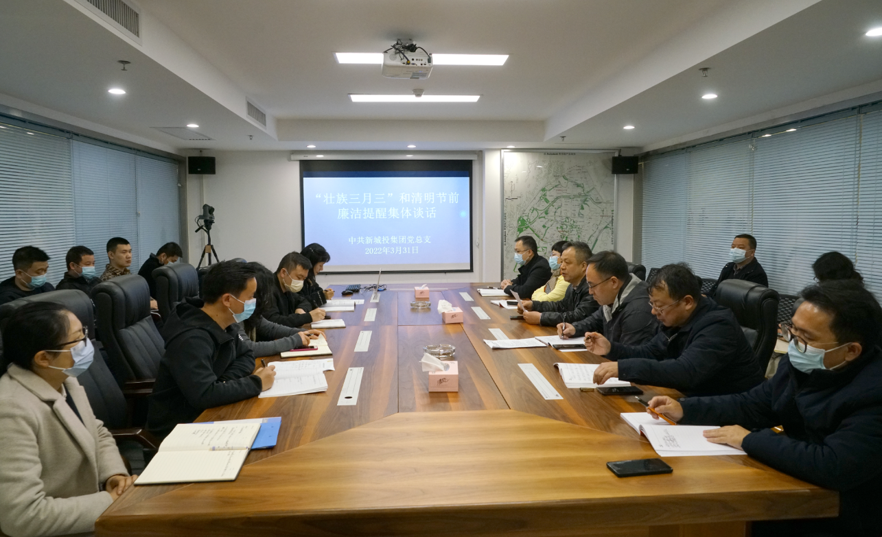 為深入貫徹落實(shí)中央、自治區(qū)持之以恒糾“四風(fēng)”樹(shù)新風(fēng)部署要求,嚴(yán)防“四風(fēng)”問(wèn)題反彈回潮,推動(dòng)移風(fēng)易俗, 2022年3月31日,新城投集團(tuán)召開(kāi)“壯族三月三”和清明節(jié)前廉潔提醒集體談話會(huì)。集團(tuán)黨總支書(shū)記、董事長(zhǎng)周道林主持會(huì)議,并就落實(shí)上級(jí)要求對(duì)集團(tuán)領(lǐng)導(dǎo)班子成員、各部室子公司負(fù)責(zé)人進(jìn)行廉政提醒。
