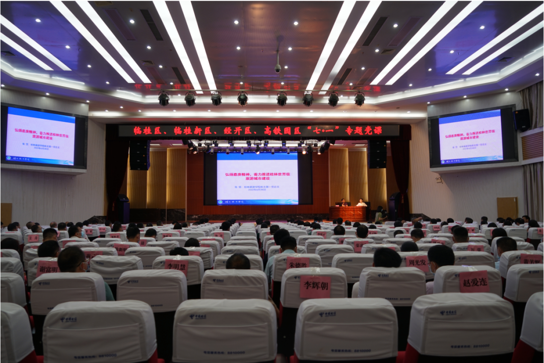 為慶?!捌咭弧苯h節(jié),喜迎黨的二十大勝利召開,扎實推進黨史教育常態(tài)化長效化開展,增強黨員領導干部使命感和責任感,加快推進桂林產(chǎn)業(yè)振興,為打造世界級旅游城市提供堅強的思想和組織保障,2022年6月28日上午,桂林市紀委駐臨桂新區(qū)管委會紀檢監(jiān)察組在臨桂區(qū)委黨校一樓報告廳組織召開“弘揚嘉庚精神,著力推進桂林世界旅游城市建設”專題黨課。黨課由桂林市紀委駐臨桂新區(qū)管委會紀檢監(jiān)察組組長、臨桂新區(qū)黨工委委員石安蘭主持。