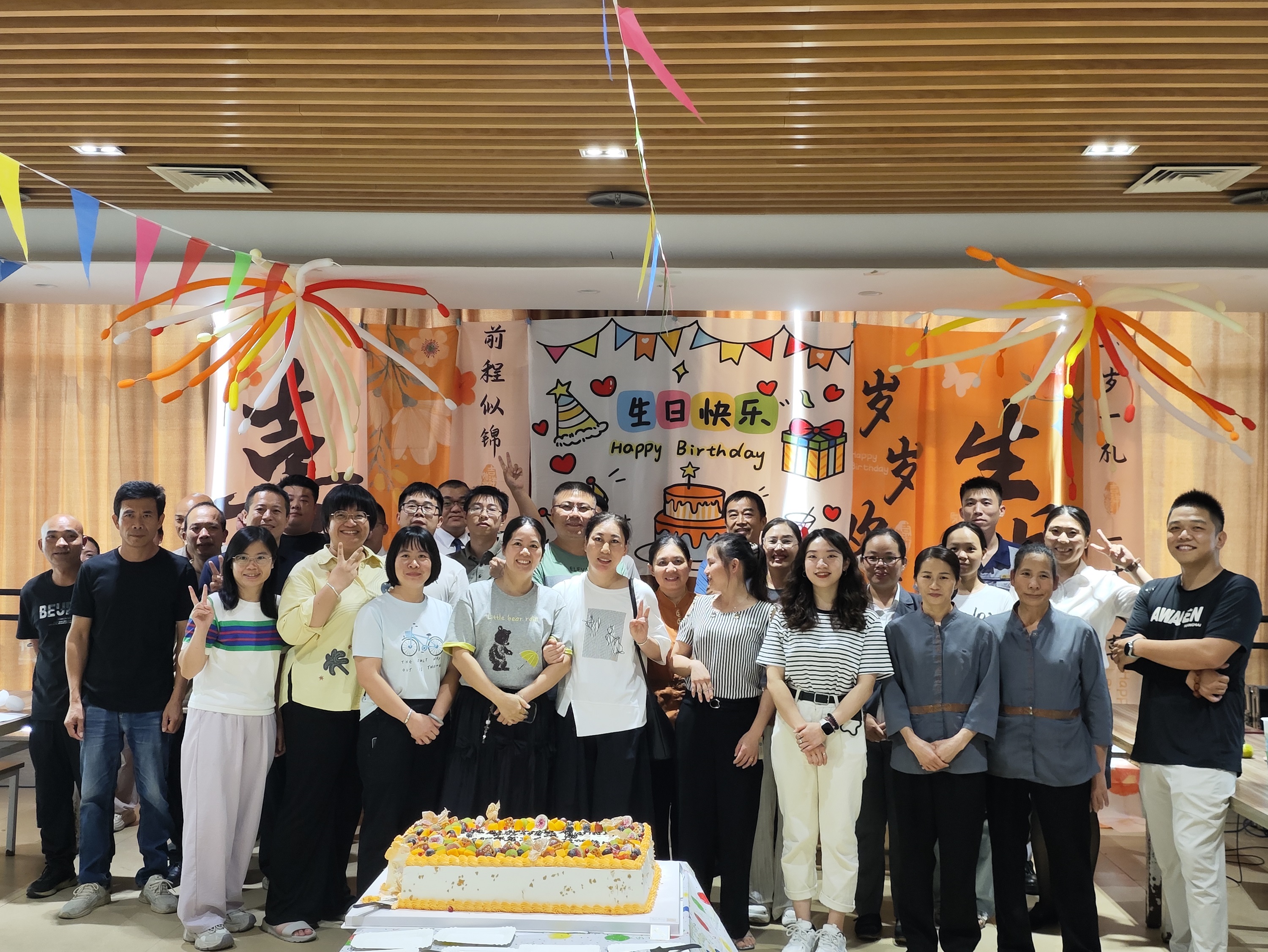 在溫馨的生日歌聲中,壽星們?cè)S下心愿,共同吹滅蠟燭。甜蜜的蛋糕被分切分享,幸福的味道在每個(gè)人心間彌漫。最后,大家齊聚舞臺(tái)前,定格下充滿笑容的合影,為本次生日會(huì)畫(huà)上圓滿的句號(hào)。