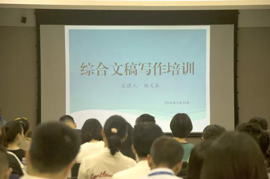 此次培訓邀請到桂林市委辦綜合二科科長鄭義來進行授課。授課內(nèi)容包括通知、請示、紀要、總結(jié)等多個文種的寫作,從各文種的特點、種類、結(jié)構(gòu)和寫法等方面進行講解。