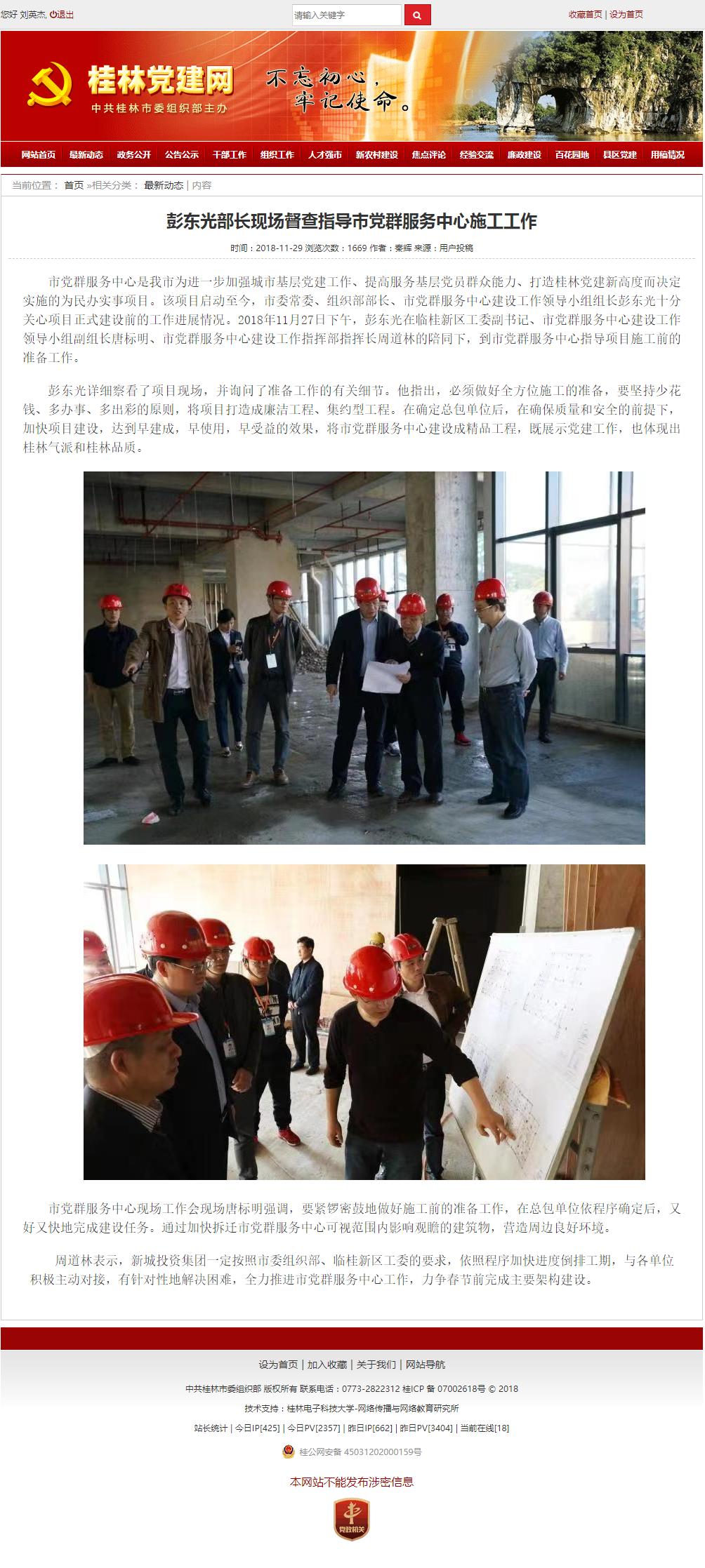 桂林黨建網(wǎng)-彭東光部長現(xiàn)場(chǎng)督查指導(dǎo)市黨群服務(wù)中心施工工作