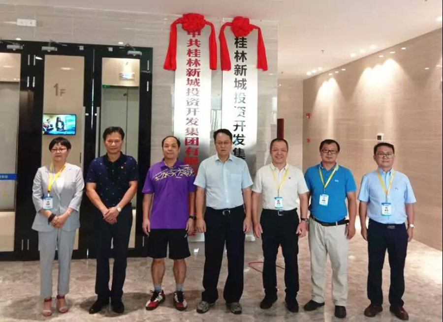 中共桂林市臨桂區(qū)委書記、中共桂林市臨桂新區(qū)工委第一副書記、桂林市臨桂新區(qū)管委會主任何新明,新區(qū)工委委員、管委會副主任覃正東,以及新城投資集團(tuán)領(lǐng)導(dǎo)班子共同為“中國共產(chǎn)黨桂林新城投資開發(fā)集團(tuán)有限公司支部委員會”、“桂林新城投資開發(fā)集團(tuán)有限公司”揭牌。
