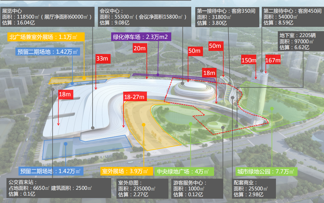 新城投資集團(tuán)全資子公司宏謀會(huì)展公司注冊(cè)資本6億元,重點(diǎn)服務(wù)會(huì)展中心項(xiàng)目建設(shè)。會(huì)展中心估算一期總投資約633438.61萬(wàn)元,其中一期總投資約 44.5億元,建設(shè)工期從2020年9月至2023年3月。項(xiàng)目建設(shè)規(guī)劃選址在臨桂新區(qū)洋田路以北、三元路以西、機(jī)場(chǎng)路以東地塊。項(xiàng)目總建筑面積400920.93平方米,其中一期總建筑面積310400.76平方米。