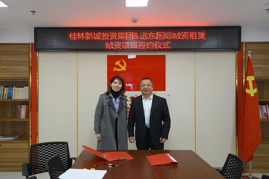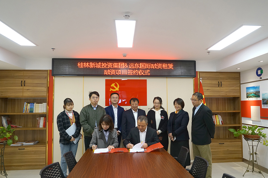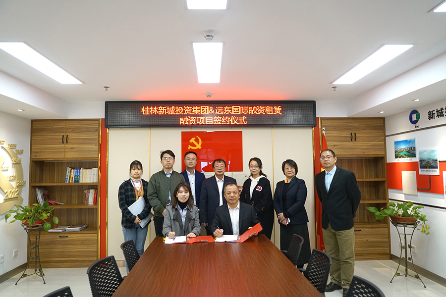 2020年11月27日上午,桂林新城投資開發(fā)集團有限公司(以下簡稱“新城投資集團”)與遠東國際融資租賃有限公司(以下簡稱“遠東租賃”)在集團辦公大樓會議室舉行戰(zhàn)略合作暨融資項目簽約儀式。新城投資集團黨總支書記、董事長、總經(jīng)理周道林,遠東租賃城市公用部廣西區(qū)域總監(jiān)張昆昆分別代表雙方在融資合同上簽字。