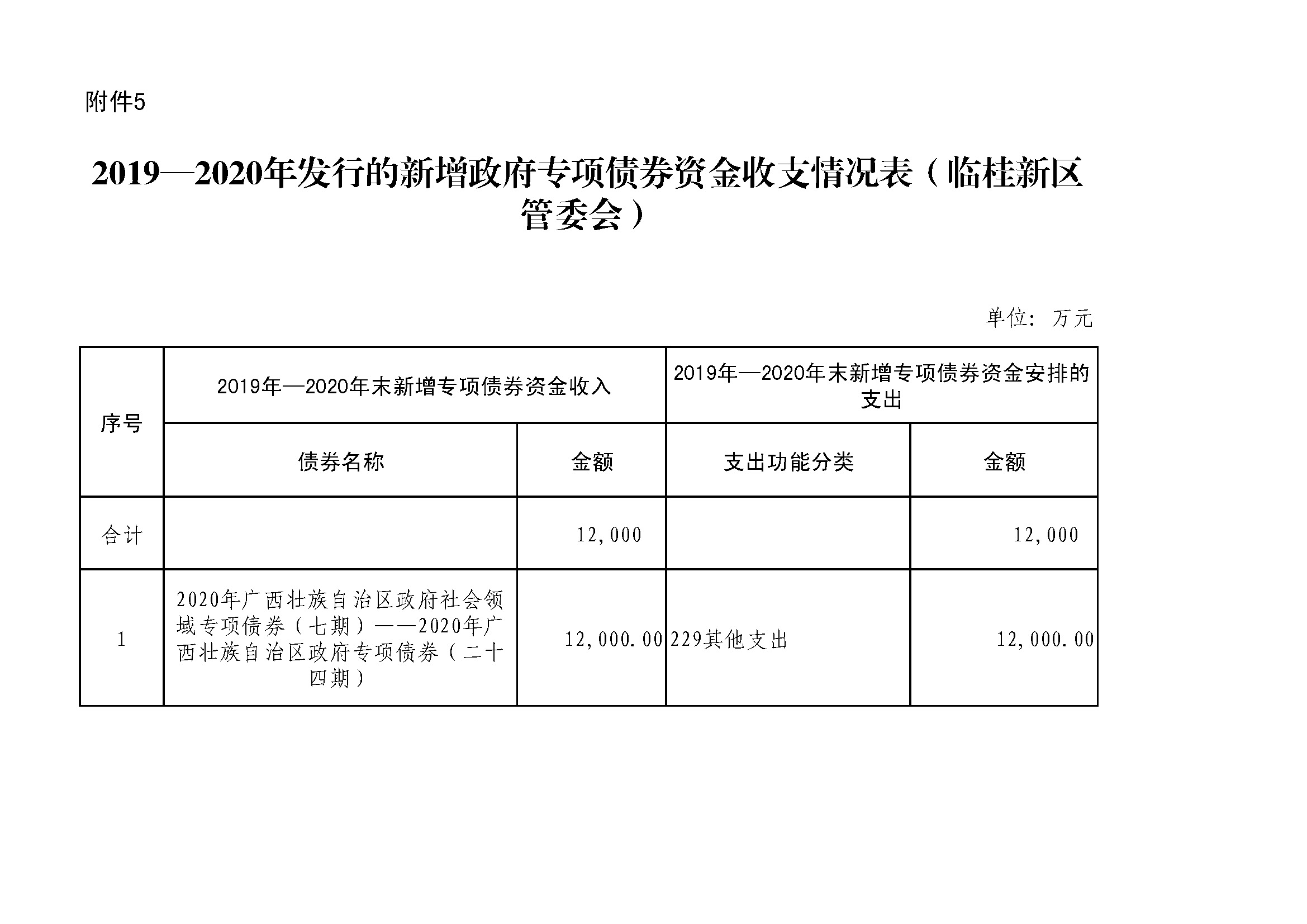 桂林市本級(jí)2019年--2020年末發(fā)行的新增地方政府專項(xiàng)債券情況表(臨桂新區(qū))