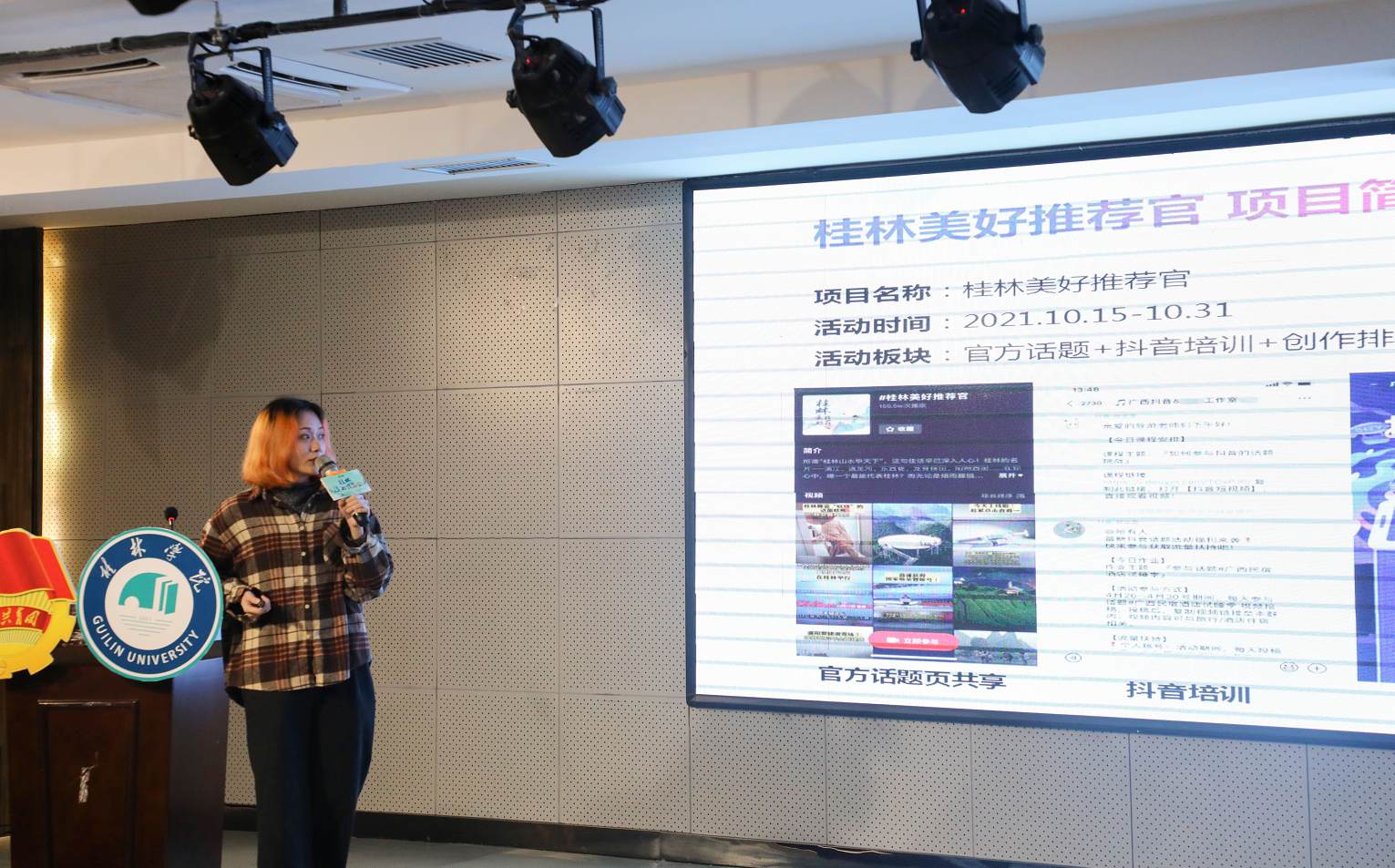 “桂林美好推薦官”話題活動(dòng)由自治區(qū)文化和旅游廳、共青團(tuán)廣西壯族自治區(qū)委員會(huì)、共青團(tuán)桂林市委員會(huì)、桂林旅游發(fā)展總公司、桂林旅游股份有限公司共同發(fā)起。桂林學(xué)院作為桂林唯一高校承辦了此次線下抖音校園分享會(huì)。桂林各高校抖音愛(ài)好者代表參加活動(dòng)。