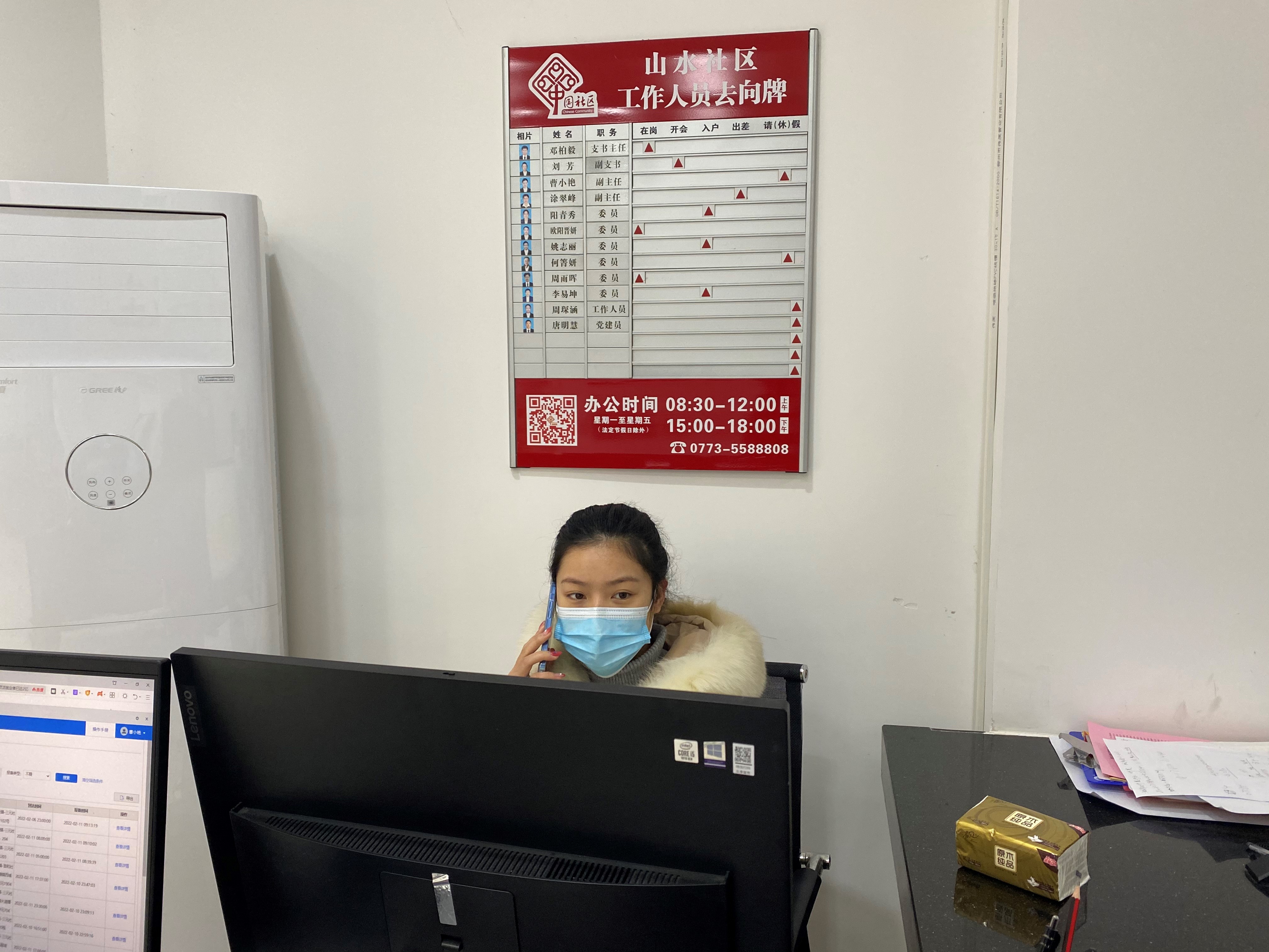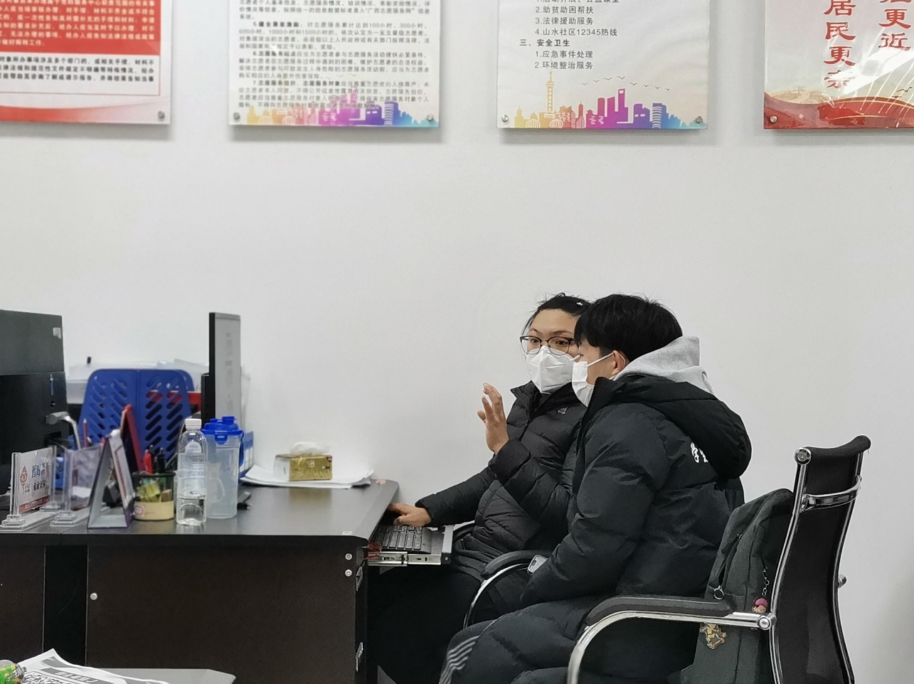 在山水社區(qū)黨群服務(wù)中心,志愿者們迅速投入到工作狀態(tài)中,為全力打贏疫情防控這場硬仗,大家從線上行程報(bào)備信息復(fù)核,到咨詢統(tǒng)計(jì)入桂、返桂人員核酸證明持證情況,各項(xiàng)工作緊張有序推進(jìn),很好的緩解了社區(qū)防疫相關(guān)工作存在的人手少、居住人口多、范圍大的緊張局面。