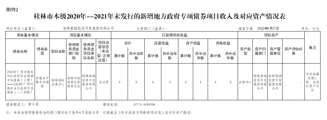 桂林新城投資開發(fā)集團(tuán)有限公司關(guān)于2020年-2021年發(fā)行的新增政府債券使用和管理情況