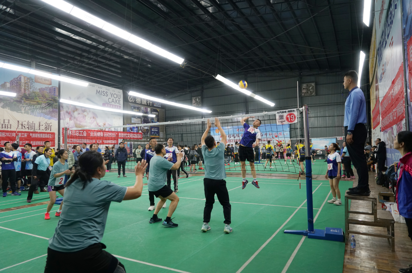 賽場上,新城投集團參賽隊員們齊心協(xié)力、奮力拼搏。發(fā)球、接球、跑動、扣殺……每一個細節(jié)都展示出良好的競技精神。隊員們配合默契,個人技術與集體戰(zhàn)術配合得到很好地體現(xiàn),在場上盡情揮灑著熱情與汗水,場下拉拉隊員歡呼聲、吶喊聲、加油聲此起彼伏。