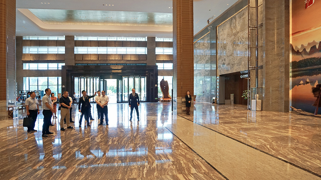 隨后,陶毅一行來到桂林新國際會展中心開展實地調(diào)研工作。在聽取項目的建設(shè)進(jìn)度和經(jīng)營狀況后,對項目給予充分肯定,他強(qiáng)調(diào),當(dāng)前會展業(yè)競爭日益激烈,桂林新國際會展中心必須持續(xù)創(chuàng)新并提高服務(wù)水平,以吸引更多的國內(nèi)外展商和觀眾。要深入研究市場需求,精準(zhǔn)定位展會主題和內(nèi)容,塑造具有獨特魅力和廣泛影響力的標(biāo)志性品牌展會。他鼓勵項目團(tuán)隊繼續(xù)保持積極向上的工作態(tài)度和團(tuán)結(jié)協(xié)作的精神風(fēng)貌,為桂林新國際會展中心的建設(shè)和運營貢獻(xiàn)更多的智慧和力量。