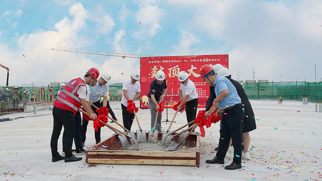 黨旗映勝地 建設(shè)我先行——桂林學(xué)院二期建設(shè)項(xiàng)目4#、5#、6#學(xué)生宿舍樓順利封頂,共慶國慶佳節(jié)!