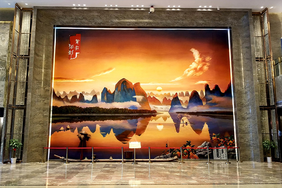 酒店以桂林山水藝術(shù)為主題,一千多幅著名畫家的珍品真跡展示,以桂林傳統(tǒng)的山水歷史為題材,讓客人移步換景,仿若身居山水藝術(shù)長廊,在酒店內(nèi)就能感受到桂林山水之美。